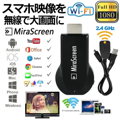 MiraScreen ドングル 2.4G 1080P HDMI WiFi ワイヤレス ディスプレイアダプター レシーバー ミラキャストフリーインストール TVドングル DLNA MiraCast AirPlay Iphone iPad Mac Androidなど対応