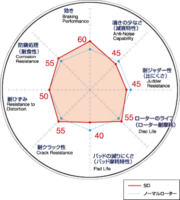 ↓↓↓↓こちらのブランドはメーカーHPにて在庫の確認が可能です!↓↓↓↓メーカーHPで詳細・適合確認する・・・こちら■プラス20%の制動力がもたらす安全性!各種シミュレーションテストではPDタイプに比べ、摩擦係数が最大20%アップ!20%の制動性能の向上により、車輌の安全性が向上! ゆとりのあるドライビングが可能に!スリット本数は鳴き、摩耗、ガスの除去効果など様々な事案を考慮し、6本に決定!スリットの幅、角度、深さなどは実戦データから最適な数値をチョイス回転方向はより高いシェービング効果が得られるようリバース回転(逆回転)を採用スリット位置をアウター/インナーでオフセットすることによりジャダーの抑制に成功※オプションのカラードローター加工はコチラ
