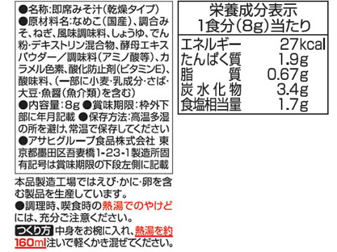 【仕様】●注文単位:1食●内容量:8g●お召し上がり方:中身をお椀に入れ、熱湯をお椀8分目(約160ml)まで注いで軽くかき混ぜてください。