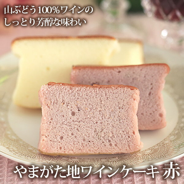 「やまがた地ワインケーキ(赤)は」独特の酸味がフルーティーで、ケーキの程よい甘さと調和して、ふくよかな味わいを醸し出し、口いっぱいに甘酸っぱく芳醇な香りが広がります。