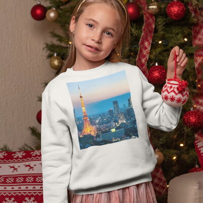 トレーナー キッズ 子供 長袖 ホワイト グレー ブラック デザイン 110 130 150 sweatshirt trainer 白 黒 灰色 裏パイル スウェット スエット 014734 東京タワー 写真