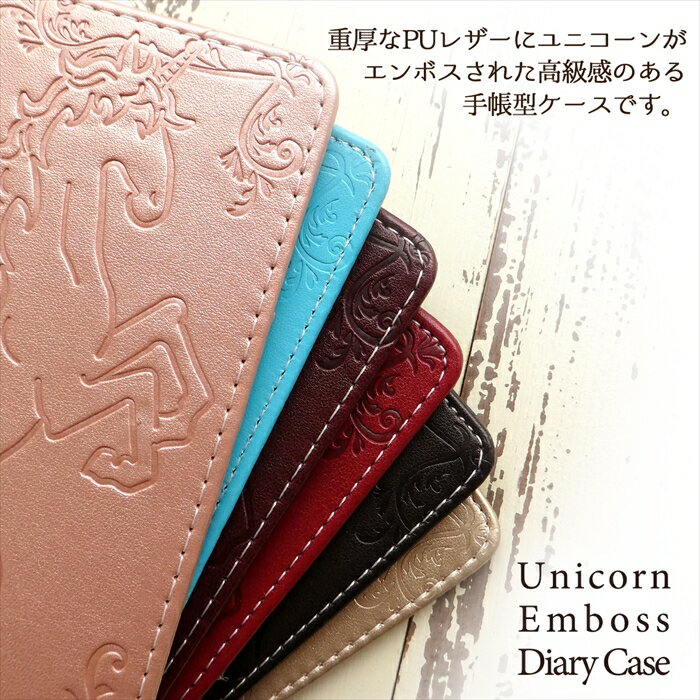 [ エンボス ゆにこーん ユニコーン 型押し レザー 高級 フォーマル クール ブラック ボルドー ブラウン ターコイズ ピンク ゴールド メンズ レディース 男女兼用 手帳型ケース 手帳ケース 手帳型カバー 手帳カバー ]
