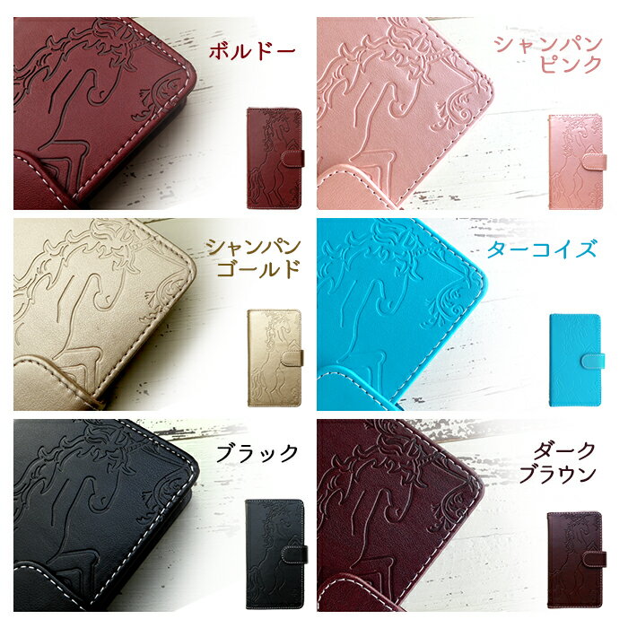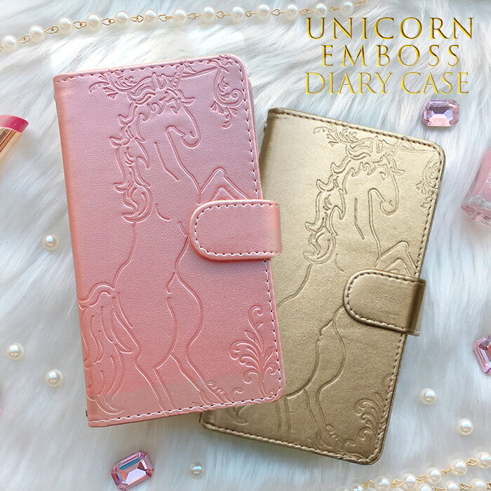 カラーバリエーション豊富なPUレザーにユニコーンがエンボスされた高級感のある手帳型ケースです。